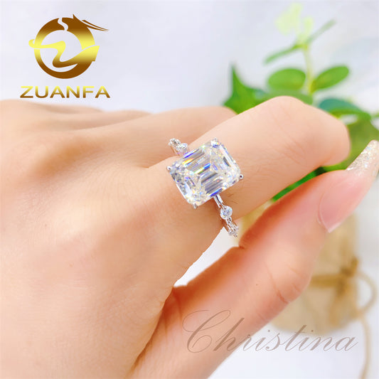 Luxury Emerald Cut Moissanites Diamond Wedding Rings 10K Solid White Gold Engagement Ring