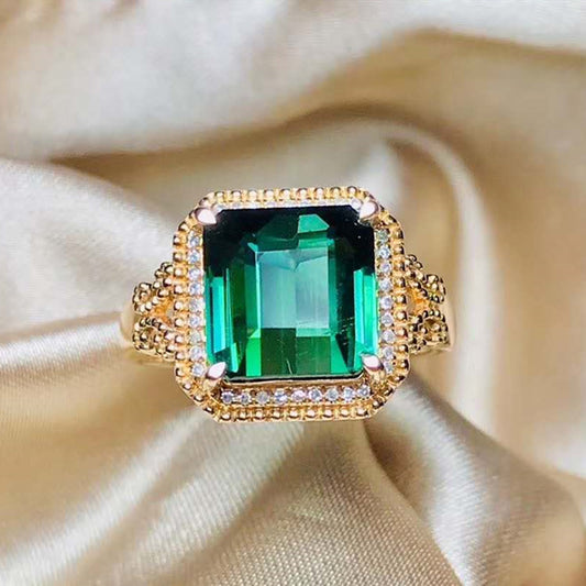 Luxury 18k Gold Ring With 4ct Natural Tourmaline Ring